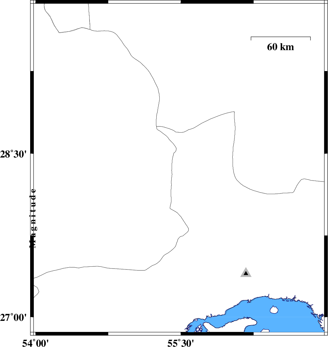 | 2010/08/11 | 09:06:45.6 | 13:36:45.6 | 27.1 | 55.72 | 10 | ML:3.9 | Hormozgan Province, 56 km West of Bandar-e abbas |