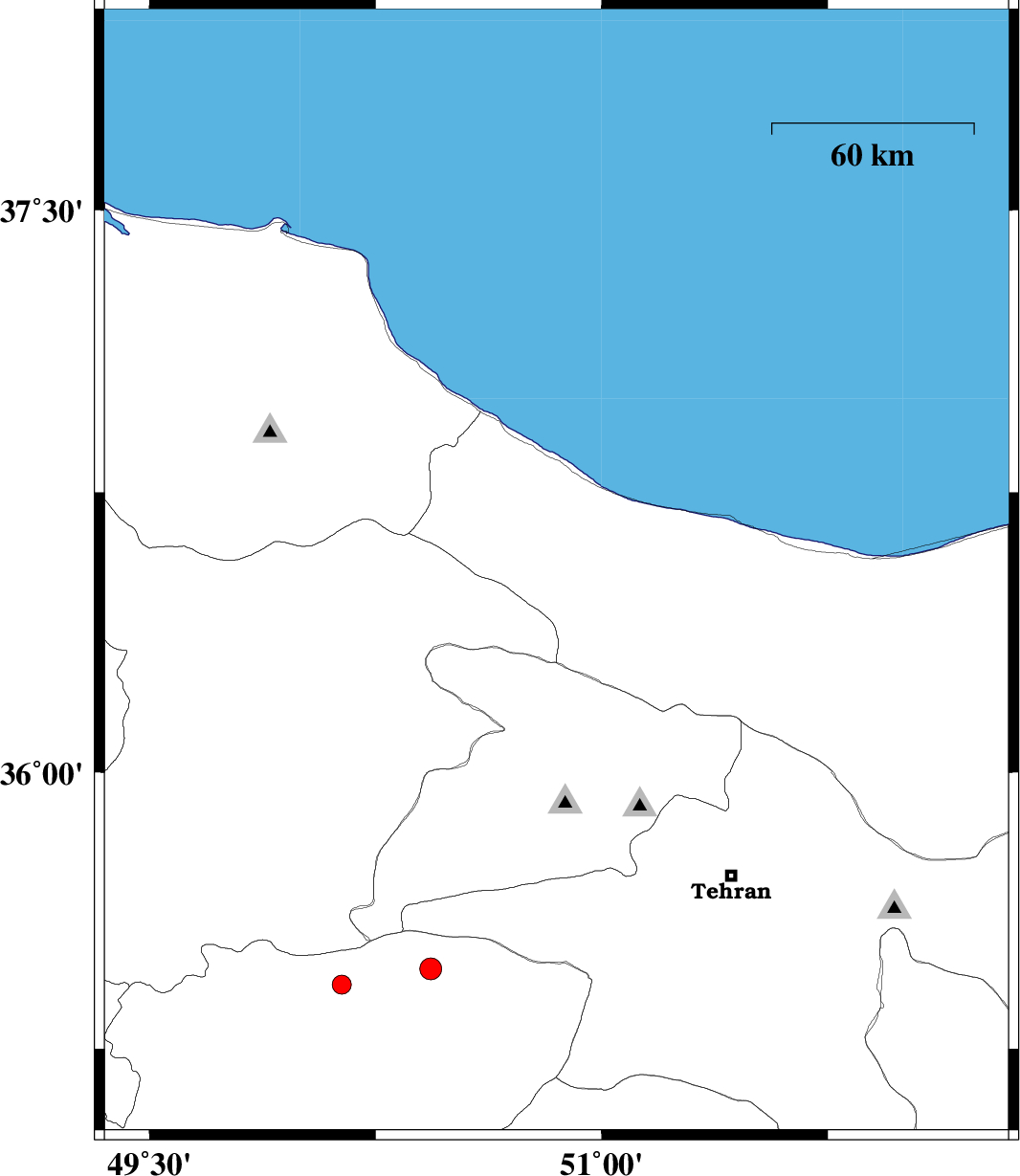 2010/08/20 | 03:11:55.8 | 07:41:55.8 | 36.53 | 50.85 | 35 | ML:3.2 | Mazandaran Province, 32 km South of Tonekabon | ||