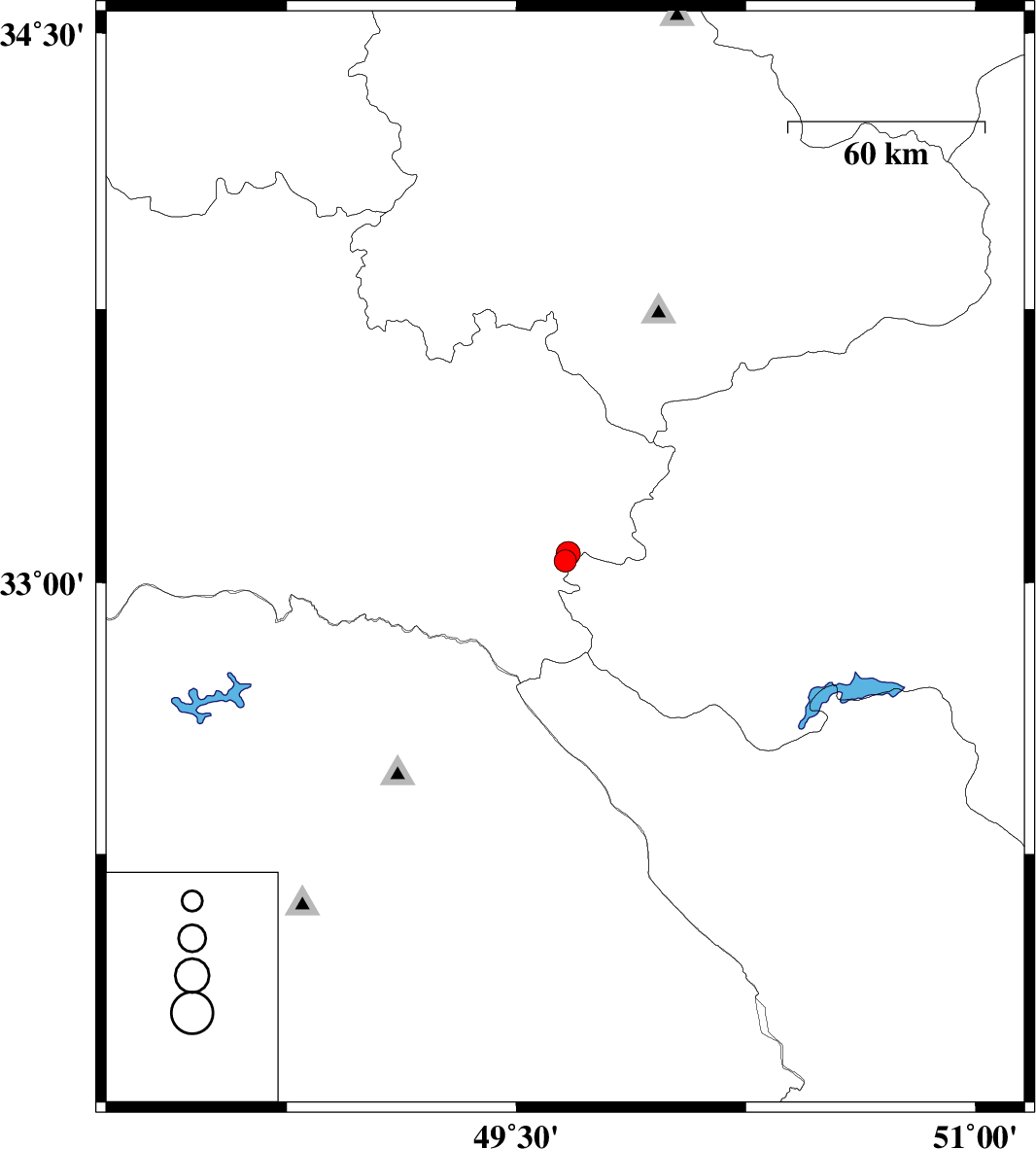 | 2010/08/20 | 11:13:05.3 | 15:43:05.3 | 33.06 | 49.66 | 15 | ML:3.3 | Lorestan Province, 39 km South of Aligudarz | ||