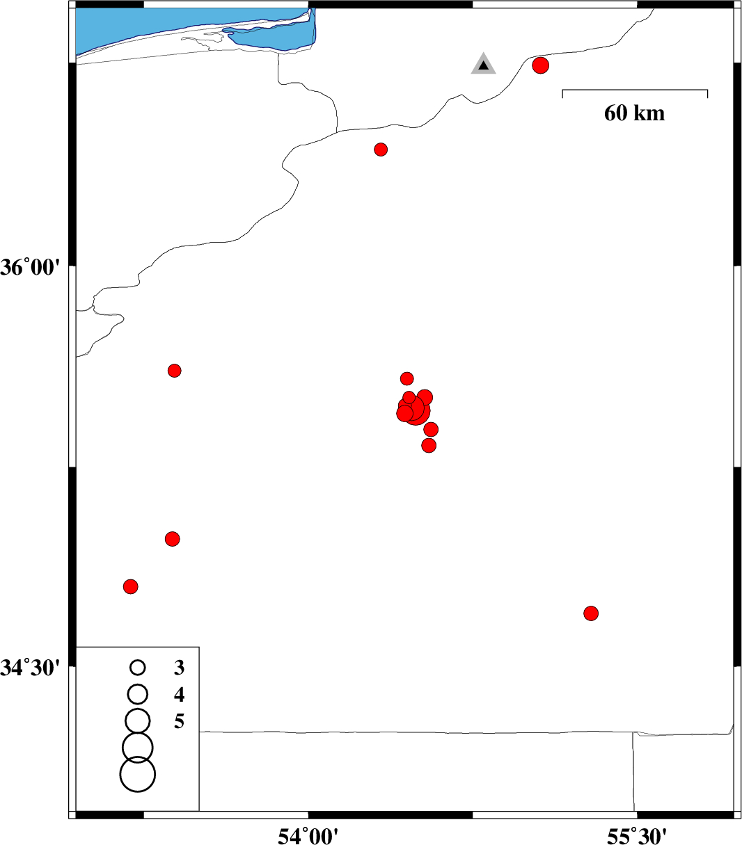 Prel. Rep. | Date | Time(UTC) | Time(Local) | Lat. | Lon. | Depth | Mag. | Region | Waveform |