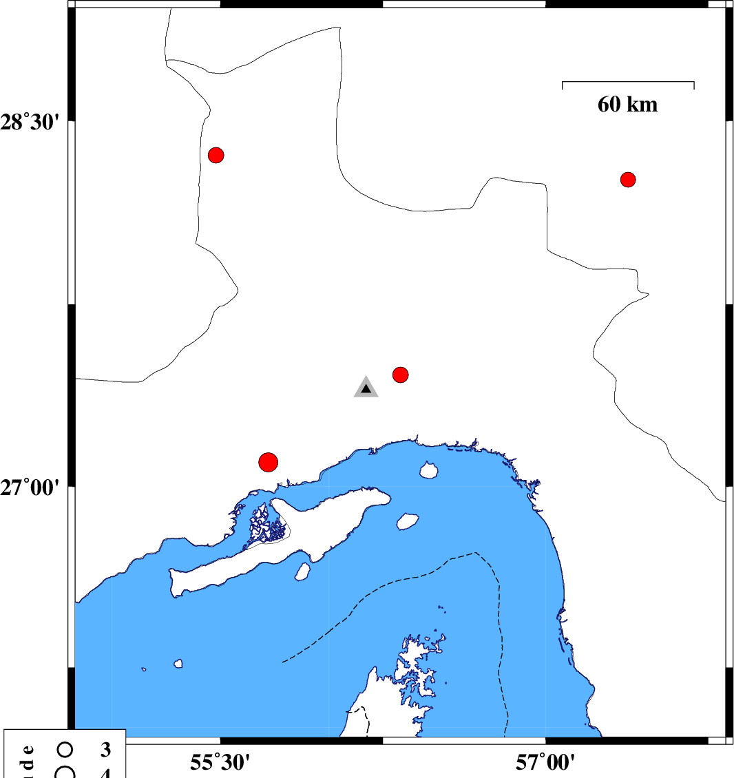 | 2010/09/03 | 22:16:10.1 | 02:46:10.1 | 27.46 | 56.33 | 18 | ML:3.2 | Hormozgan Province, 31 km North of Bandar-e abbas | ||