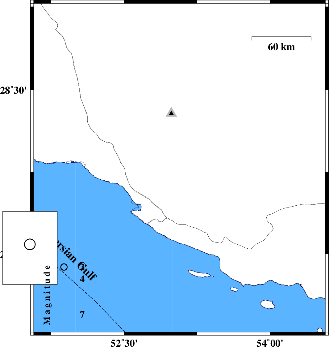 2010/09/07 | 02:53:45.7 | 07:23:45.7 | 27.09 | 53.08 | 17 | ML:3.2 | Persian Gulf, 28 km South of Lamerd | ||