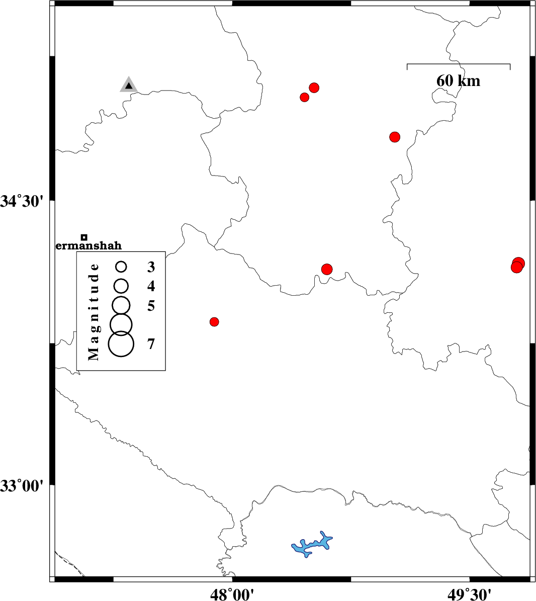 | 2010/09/09 | 02:30:18.5 | 07:00:18.5 | 33.75 | 48.89 | 6 | ML:2.9 | Lorestan Province, 21 km South-East of Borujerd | ||