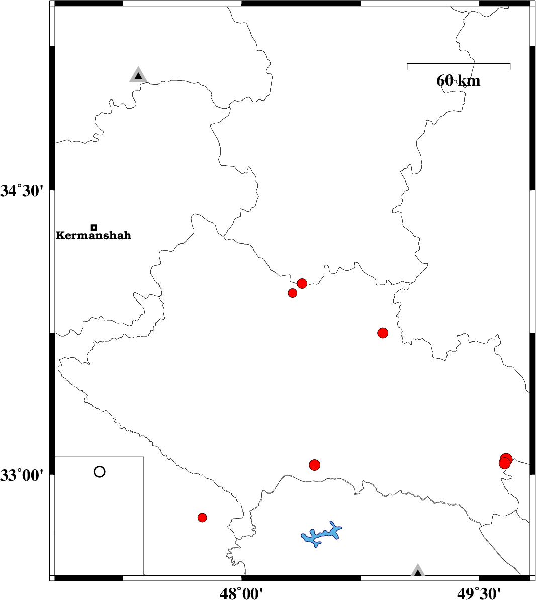 2010/09/09 | 02:30:18.5 | 07:00:18.5 | 33.75 | 48.89 | 6 | ML:2.9 | Lorestan Province, 21 km South-East of Borujerd | ||