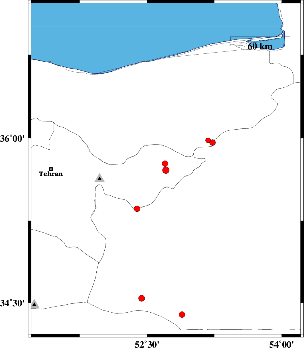 2010/08/23 | 01:33:15.8 | 06:03:15.8 | 34.54 | 52.44 | 44 | ML:3.1 | Semnan Province, 76 km South-East of Garmsar |