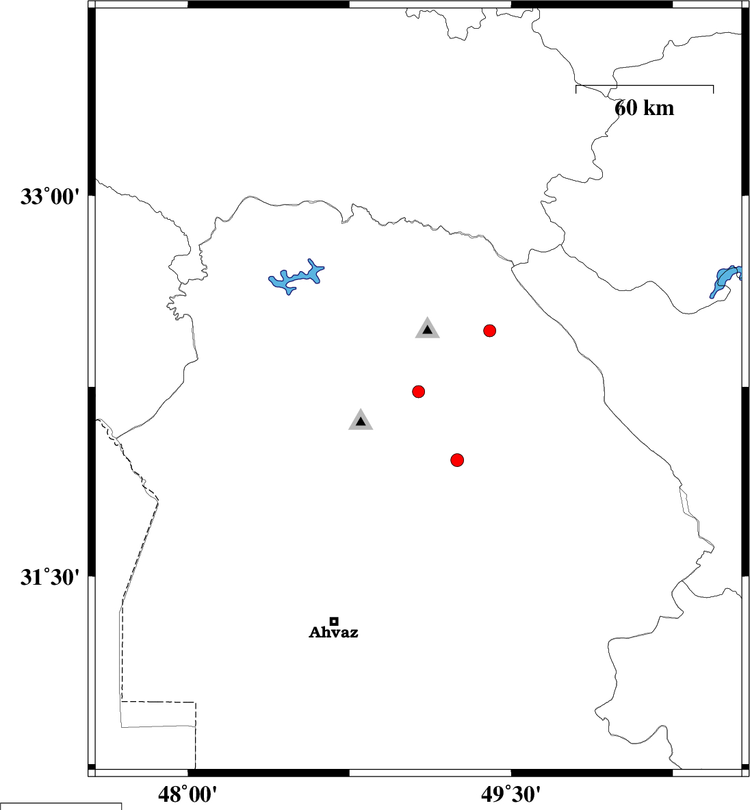 2010/09/19 | 11:11:03.6 | 15:41:03.6 | 32.23 | 49.07 | 14 | ML:2.6 | Khoozestan Province, 18 km South of Lali | ||