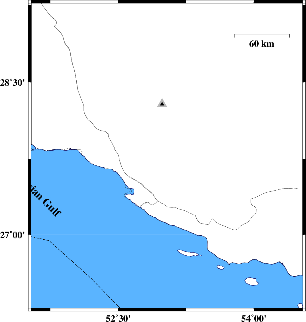 2010/09/27 | 05:53:42.5 | 09:23:42.5 | 26.7 | 53.53 | 46 | ML:3.5 | Persian Gulf, 79 km South-East of Lamerd | ||