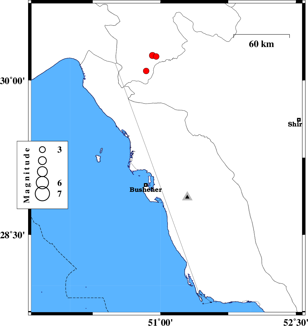 | 2010/10/08 | 22:28:57.1 | 01:58:57.1 | 29.09 | 51 | 30 | ML:2.9 | Bushehr Province, 20 km North-East of Busheher | ||
