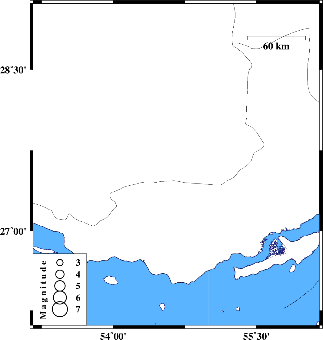 | 2010/10/16 | 10:38:45.9 | 14:08:45.9 | 27.61 | 54.66 | 38 | ML:3.4 | Fars Province, 33 km East of Lar |