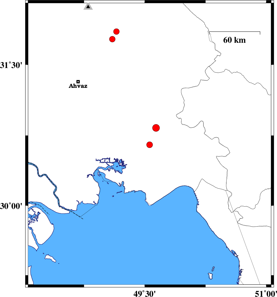 2010/10/19 04:05:15.7 07:35:15.7 30.6549.5632 ML:3.4 Khoozestan Province, 19 km South-West of Omidiyeh