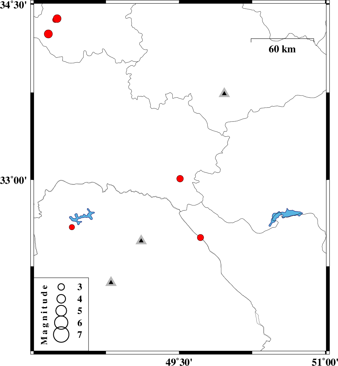 | 2010/10/20 | 10:16:02.3 | 13:46:02.3 | 32.5 | 49.72 | 14 | ML:3 | Khoozestan Province, 37 km West of Chelgard |