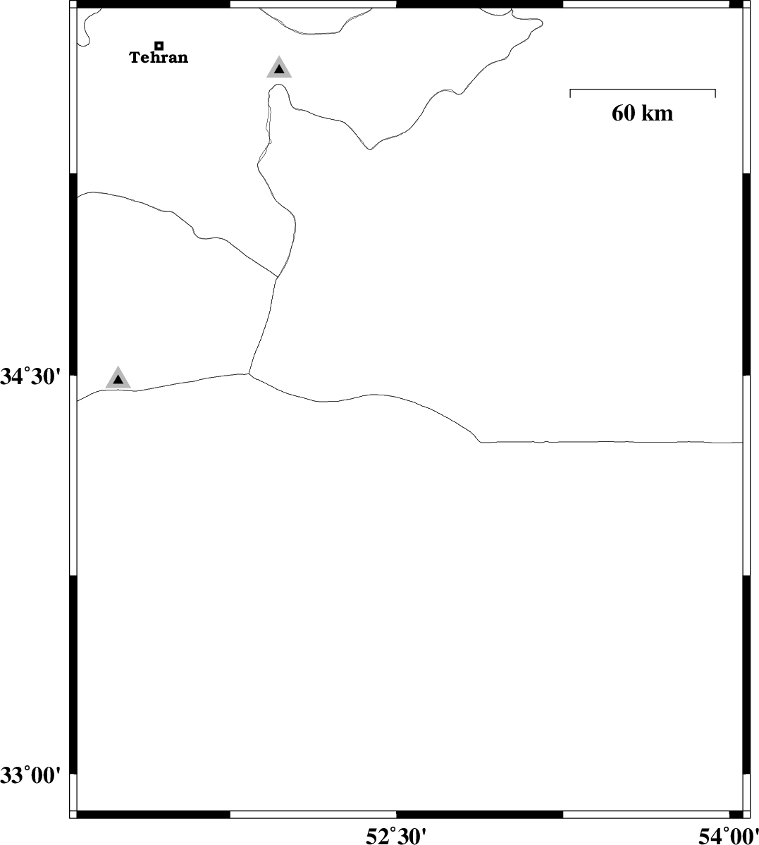 2010/10/26 | 18:58:31.8 | 22:28:31.8 | 34.36 | 52.56 | 37 | ML:2.6 | Esfahan Province, 98 km South-East of Garmsar |