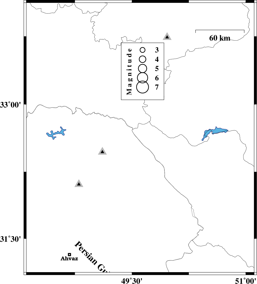 2010/11/02 | 00:02:59.2 | 03:32:59.2 | 32.62 | 49.61 | 35 | ML:3.1 | Chaharmahal Bakhtiari Province, 51 km North-West of Chelgard | ||