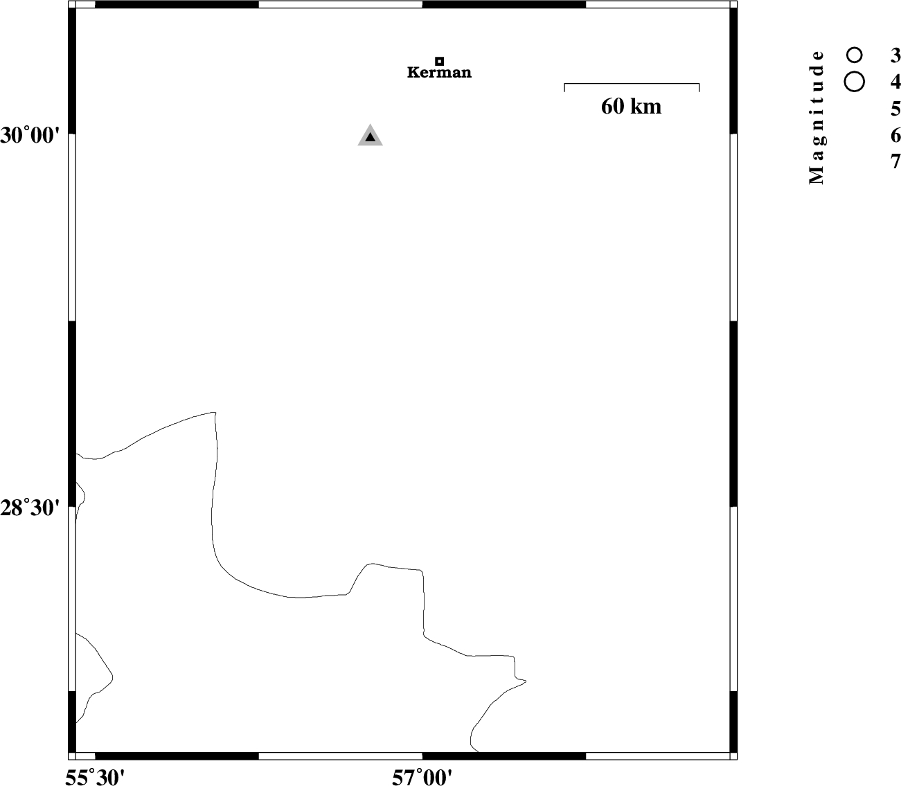 2010/10/31 | 16:16:59.7 | 19:46:59.7 | 30.31 | 57.24 | 30 | ML:3 | Kerman Province, 16 km East of Kerman | ||