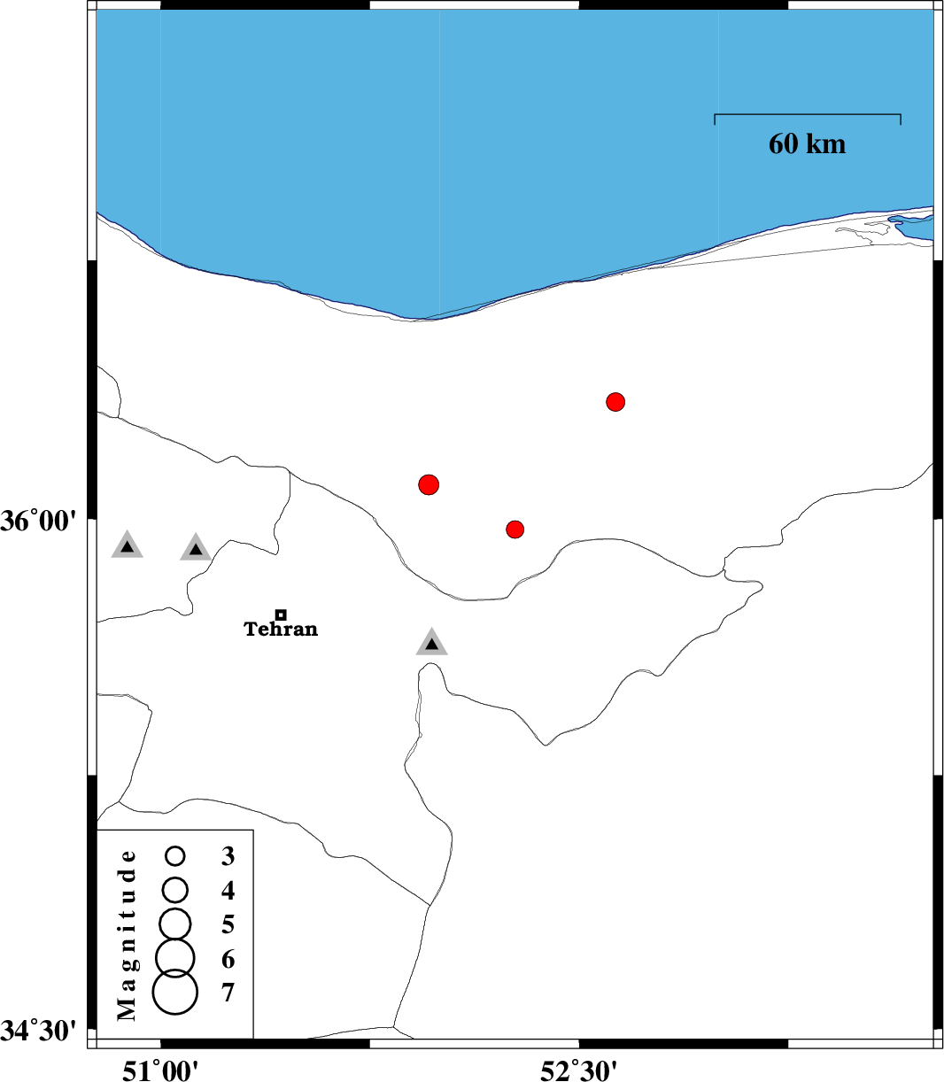 | 2010/11/09 | 01:14:43.5 | 04:44:43.5 | 36.1 | 51.96 | 6 | ML:3.2 | Mazandaran Province, 44 km North-West of Damavand |