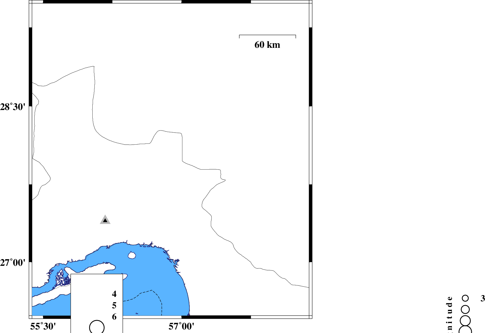 2010/11/11 | 14:45:21.1 | 18:15:21.1 | 27.97 | 56.81 | 34 | ML:3.2 | Hormozgan Province, 86 km West of Kahnuj | ||