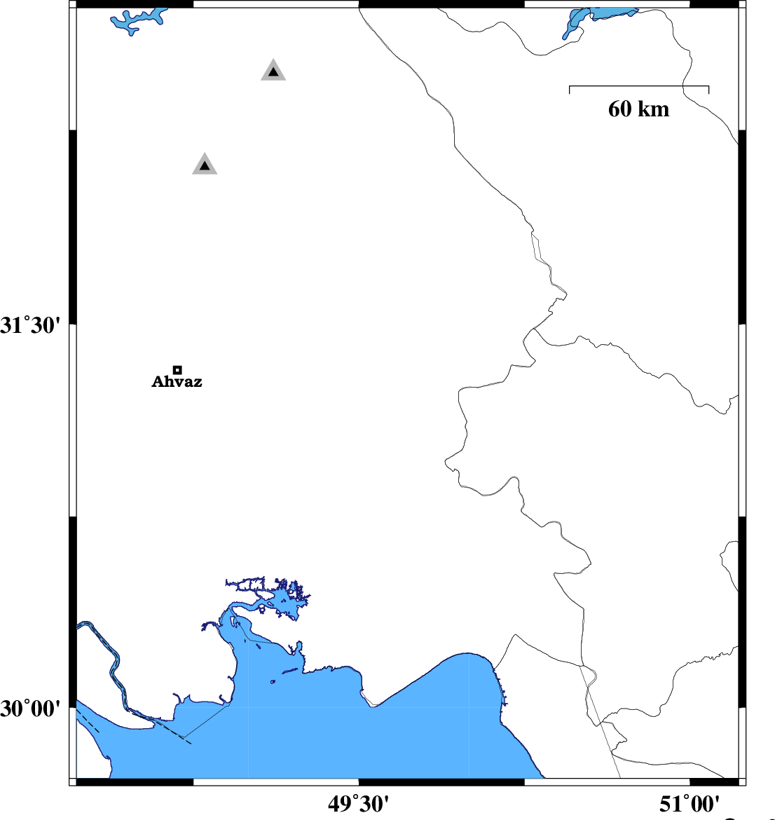 2010/11/26 | 01:07:02.4 | 04:37:02.4 | 31.22 | 49.72 | 33 | ML:3.8 | Khoozestan Province, 12 km East of Ramhormoz | ||