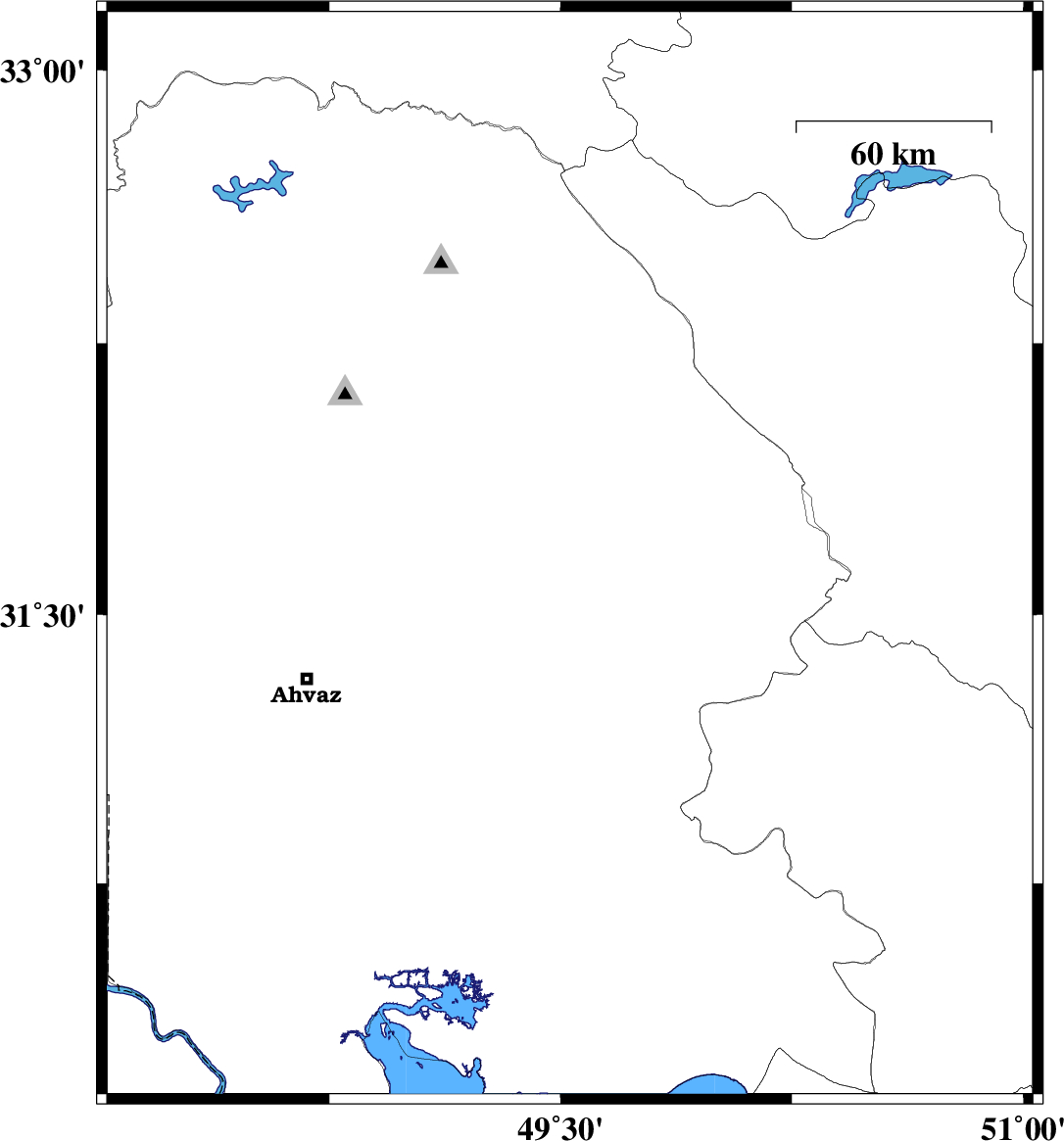 2010/11/26 | 01:07:02.4 | 04:37:02.4 | 31.22 | 49.72 | 33 | ML:3.8 | Khoozestan Province, 12 km East of Ramhormoz |