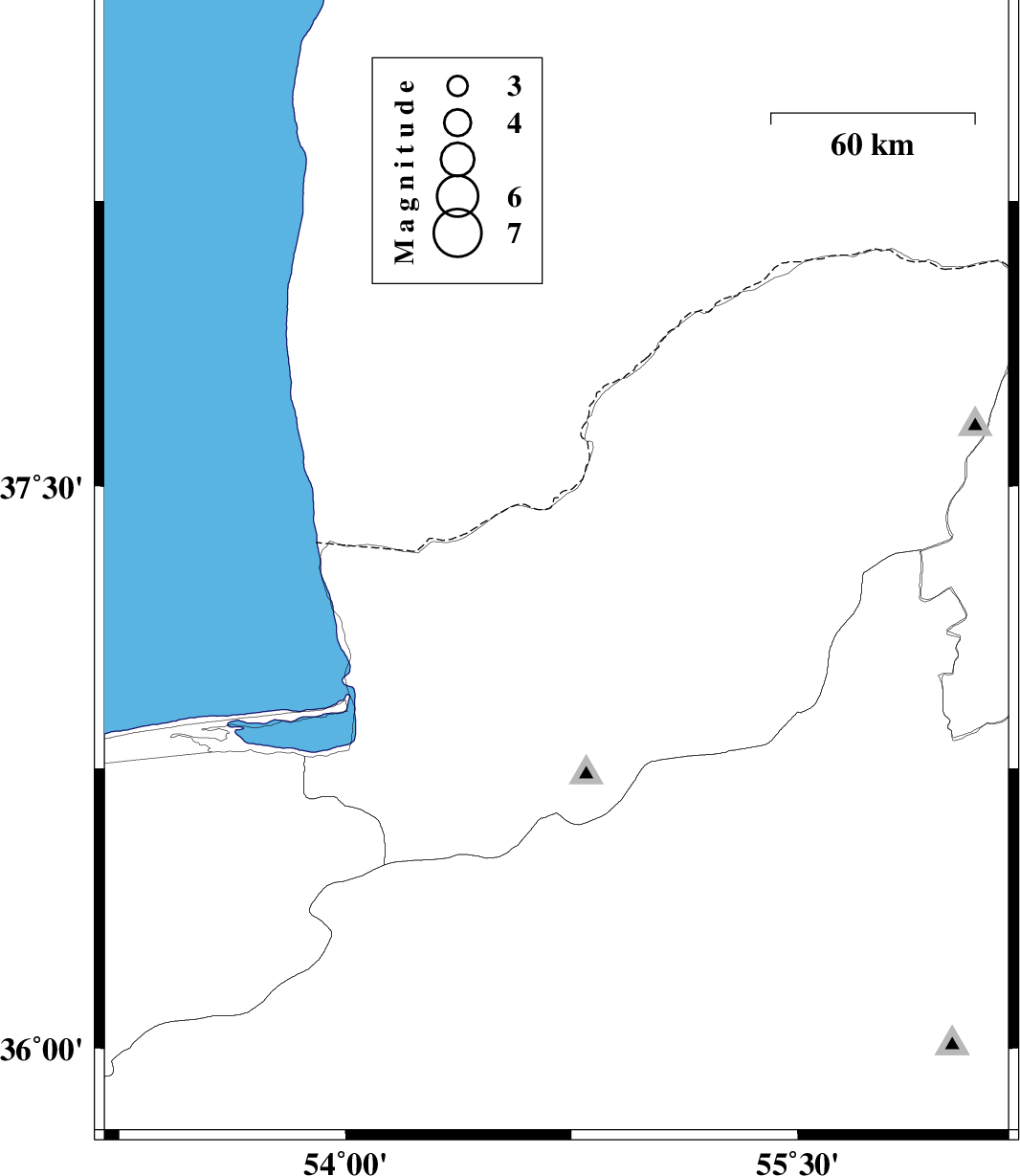 2010/12/15 | 22:02:33.9 | 01:32:33.9 | 37.28 | 54.7 | 18 | ML:3.6 | Golestan Province, 40 km West of Gonbad-e kavus |