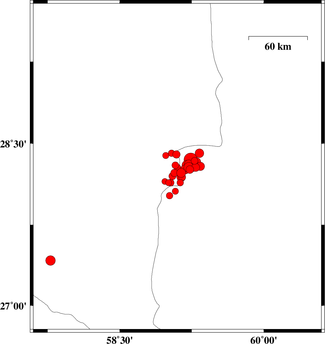 2010/12/20 18:50:23.1 22:20:23.1 28.359.214 ML:4.7 Sistan va Baloochestan Province, 121 km South-East of Bam
