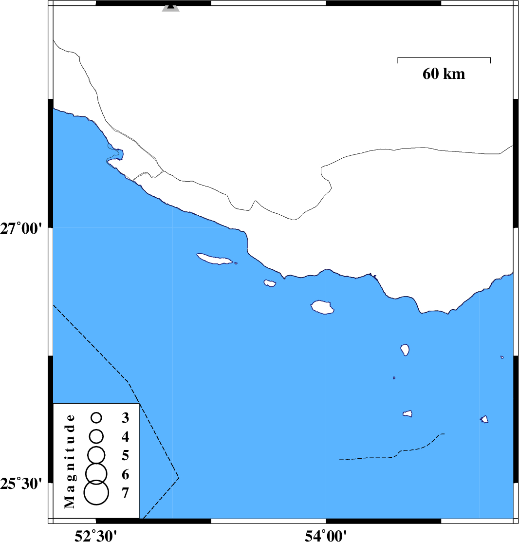 | 2010/12/27 | 07:56:47.8 | 11:26:47.8 | 26.79 | 53.72 | 46 | ML:3.8 | Hormozgan Province, 78 km South-West of Bastak |