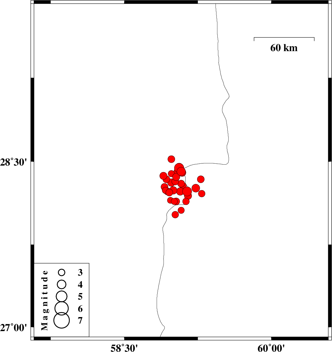 2010/12/22 07:58:26.5 11:28:26.5 28.245916 ML:3.5 Kerman Province, 115 km South-East of Bam