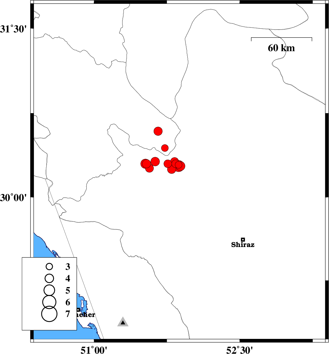2011/01/05 05:55:48.6 09:25:48.6 30.251.9914 ML:5.2 Fars Province, 7 km Ardakan