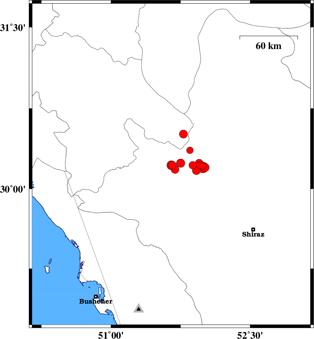 2011/01/05 05:55:48.6 09:25:48.6 30.251.9914 ML:5.2 Fars Province, 7 km Ardakan