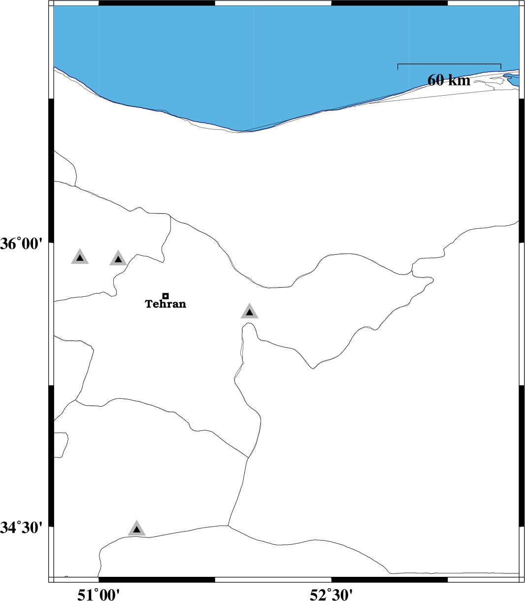 | 2011/01/08 | 18:07:15.2 | 21:37:15.2 | 35.73 | 52.21 | 14 | ML:2.6 | Tehran Province, 13 km East of Damavand | ||