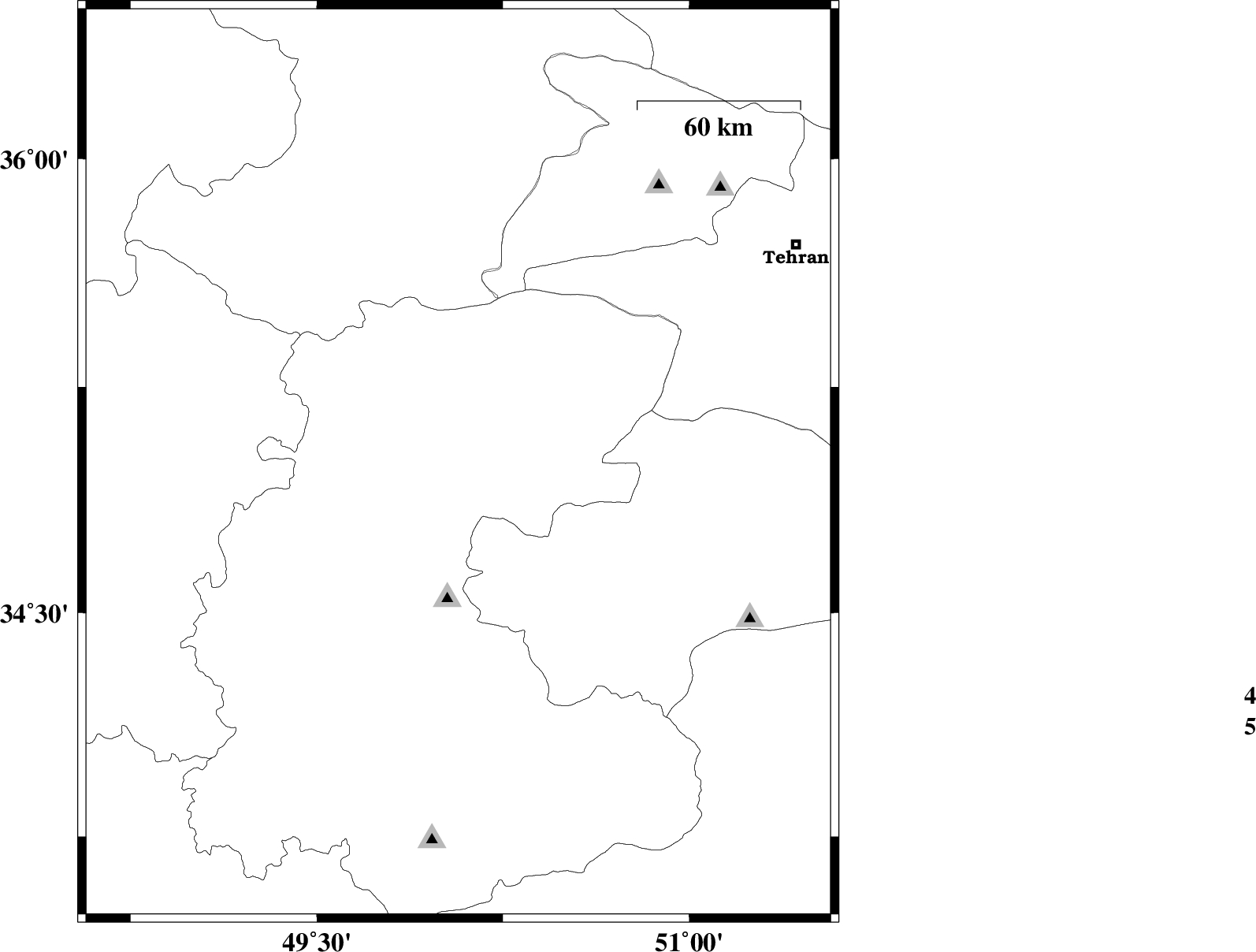 2011/01/08 | 11:48:34.6 | 15:18:34.6 | 36.28 | 50.97 | 15 | ML:2.6 | Mazandaran Province, 54 km North of Karaj |