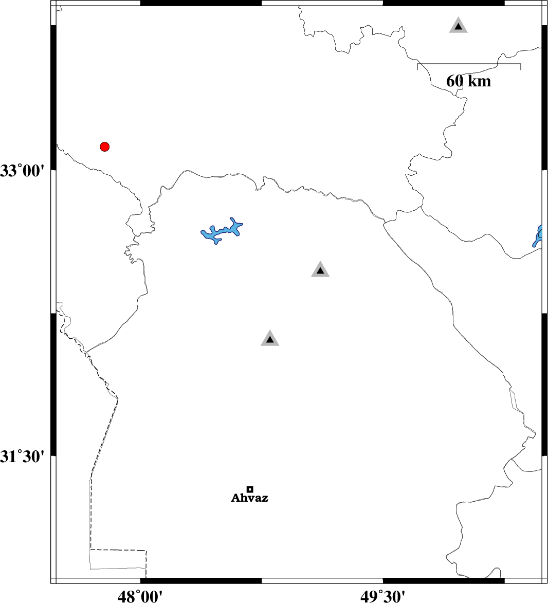 | 2011/01/19 | 03:20:50.7 | 06:50:50.7 | 32.35 | 48.98 | 27 | ML:2.6 | Khoozestan Province, 13 km West of Lali | ||