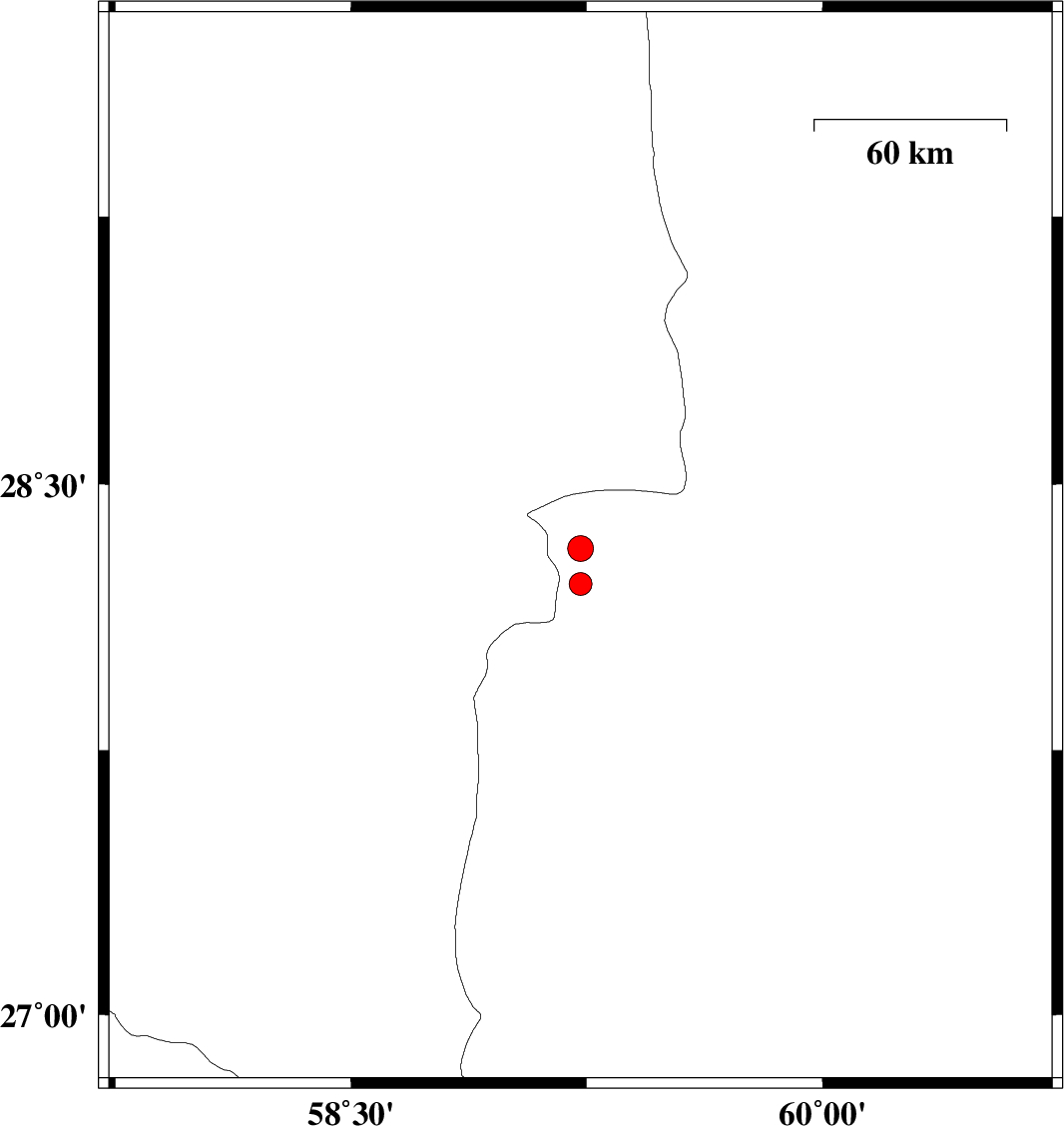 2011/01/20 | 06:20:16.9 | 09:50:16.9 | 28.32 | 59.23 | 18 | ML:3.6 | Sistan va Baloochestan Province, 122 km South-East of Bam | ||