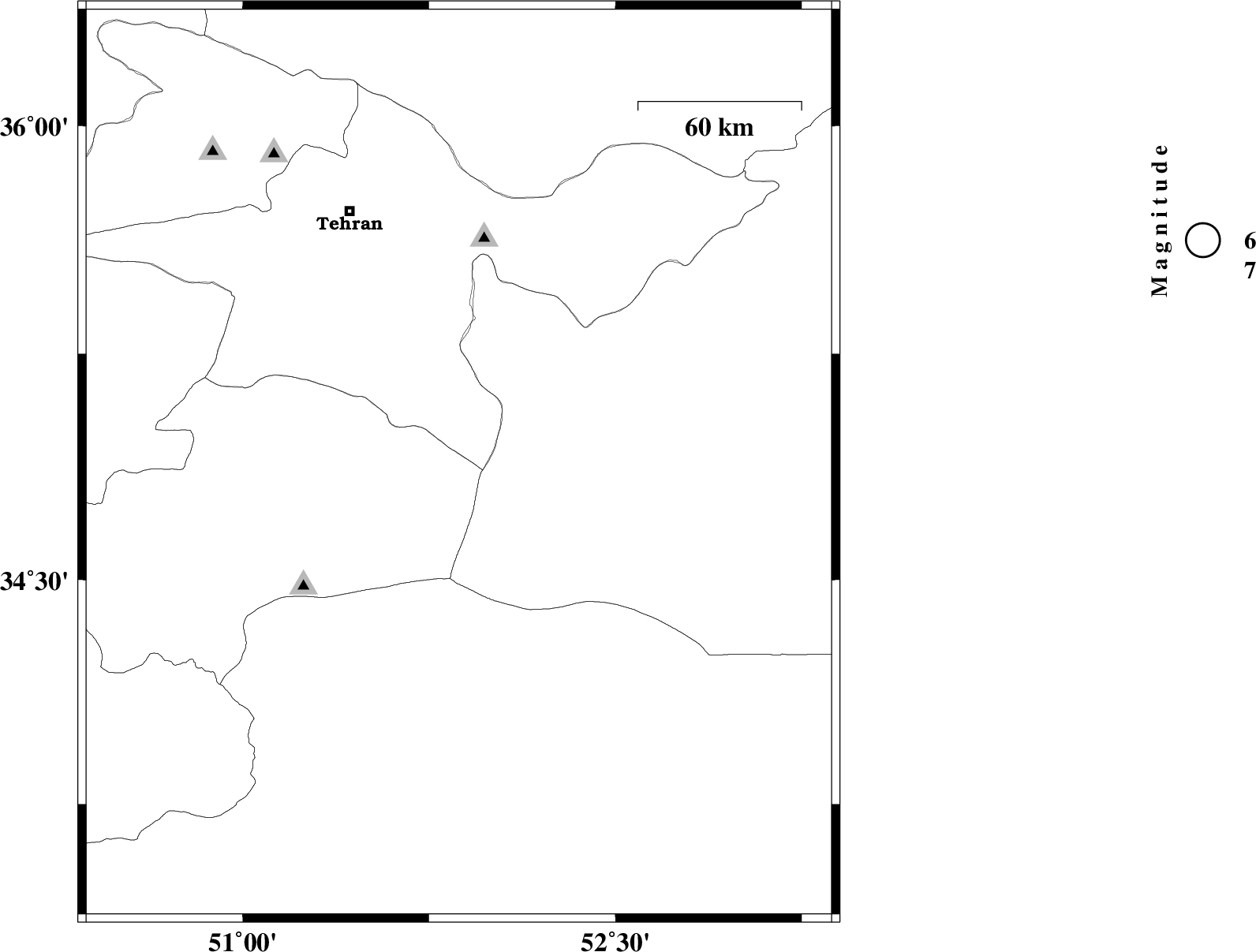 | 2011/01/08 | 18:07:15.2 | 21:37:15.2 | 35.73 | 52.21 | 14 | ML:2.6 | Tehran Province, 13 km East of Damavand | ||