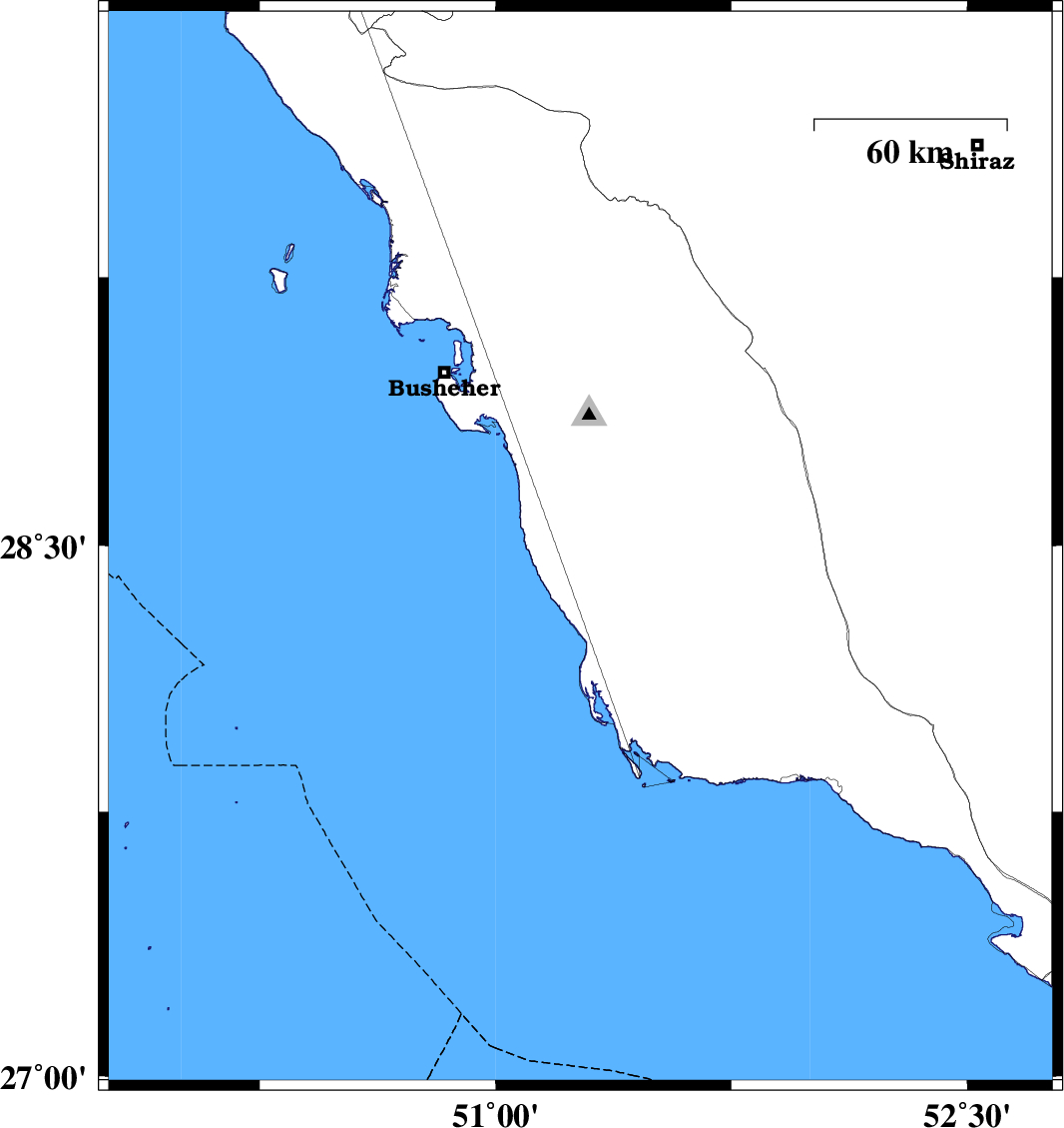 | 2011/01/24 | 17:25:01.8 | 20:55:01.8 | 28.49 | 51.27 | 18 | ML:3.2 | Bushehr Province, 21 km South-West of Khormog | ||