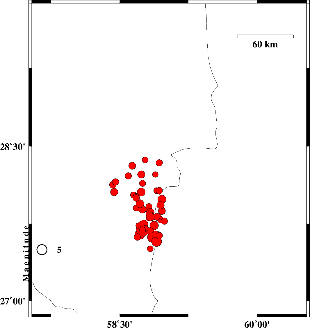 2011/01/27 16:58:55.7 20:28:55.7 28.359.0814 ML:3 Kerman Province, 114 km South-East of Bam
