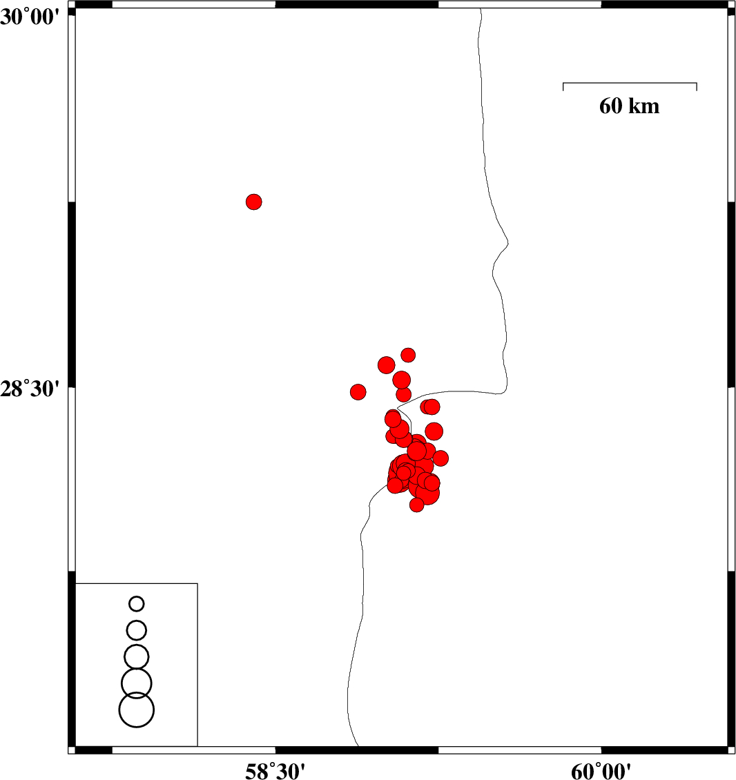 2011/01/27 19:32:54.5 23:02:54.5 28.1659.1114 ML:2.9 Kerman Province, 140 km North-East of Kahnuj