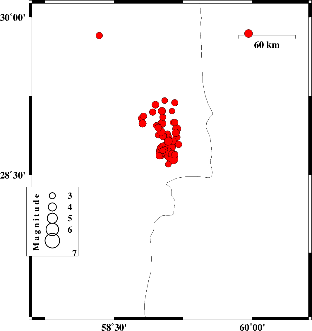 2011/01/27 21:41:33.6 01:11:33.6 28.1559.0914 ML:2.9 Kerman Province, 139 km North-East of Kahnuj