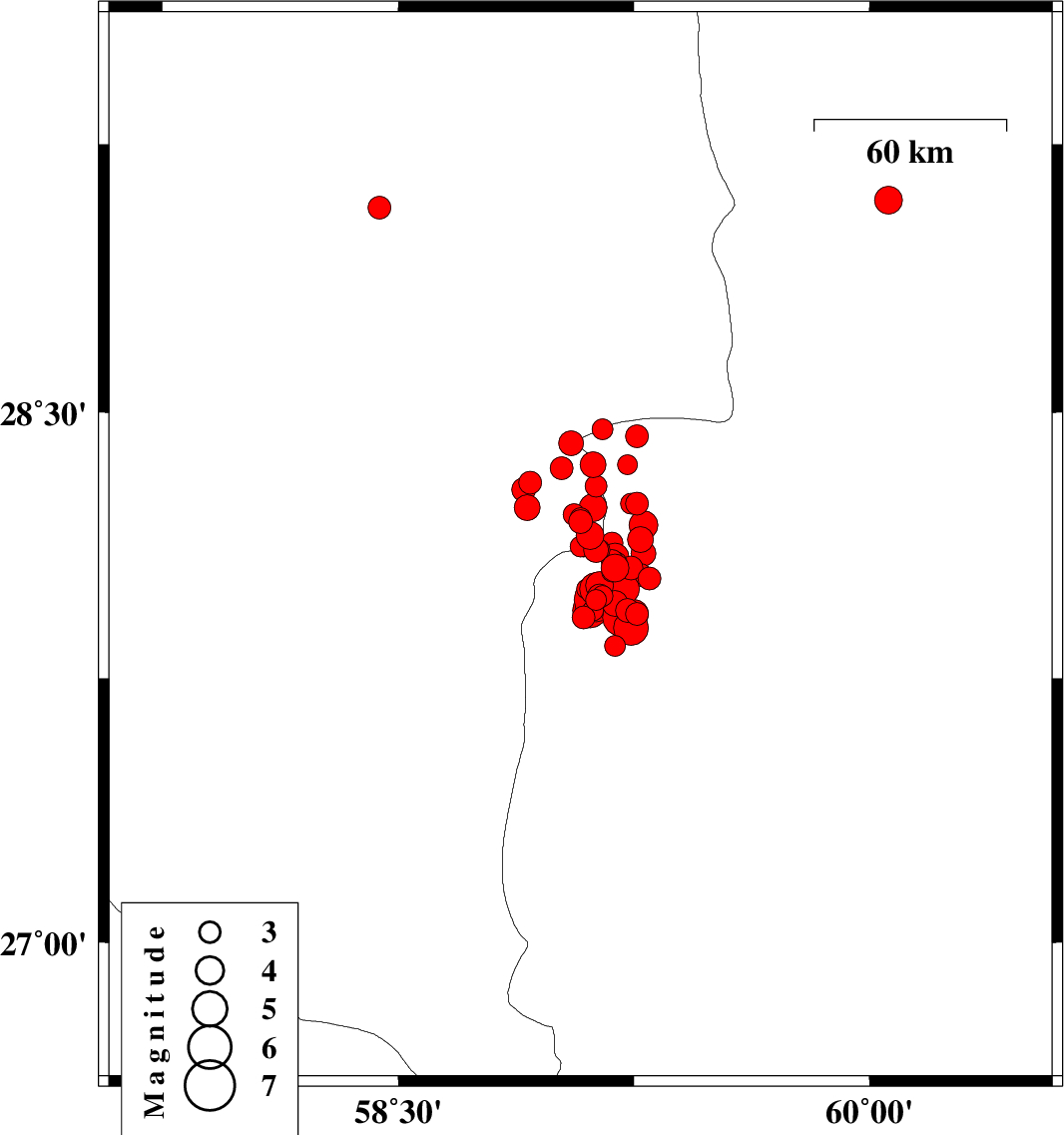 2011/01/27 19:32:54.5 23:02:54.5 28.1659.1114 ML:2.9 Kerman Province, 140 km North-East of Kahnuj