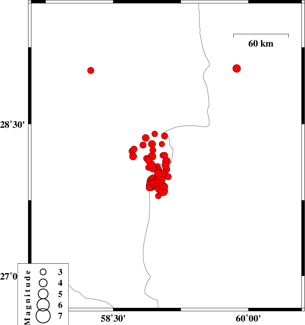 2011/01/27 16:58:55.7 20:28:55.7 28.359.0814 ML:3 Kerman Province, 114 km South-East of Bam