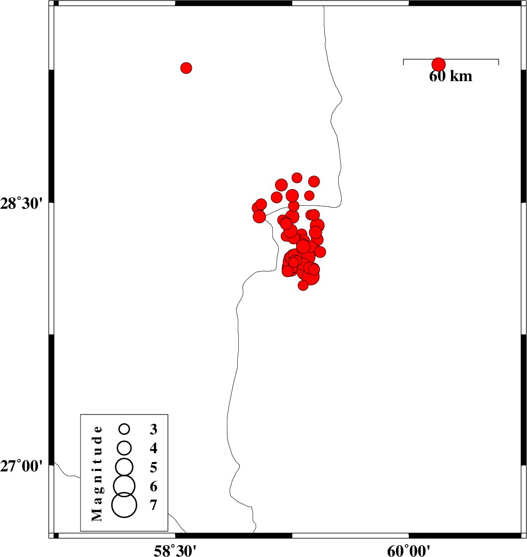 2011/01/27 15:38:45.3 19:08:45.3 28.1959.118 ML:3.9 Kerman Province, 141 km North-East of Kahnuj