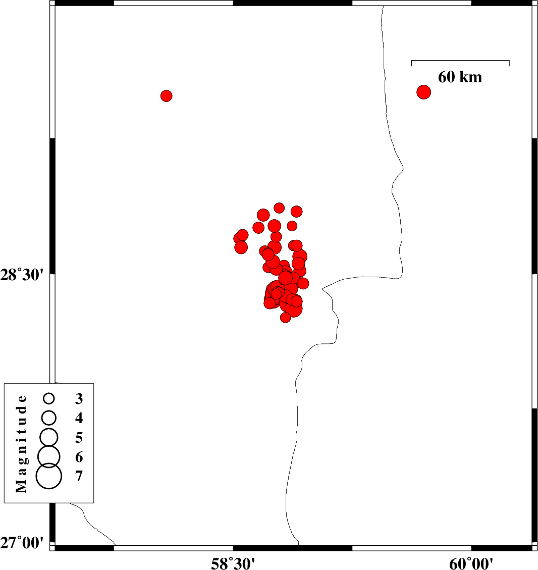2011/01/27 16:58:55.7 20:28:55.7 28.359.0814 ML:3 Kerman Province, 114 km South-East of Bam