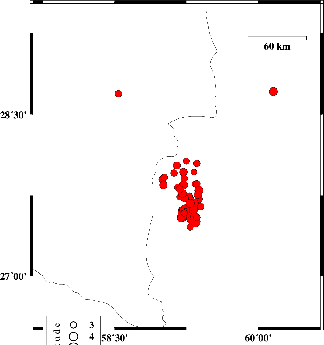2011/01/27 15:38:45.3 19:08:45.3 28.1959.118 ML:3.9 Kerman Province, 141 km North-East of Kahnuj