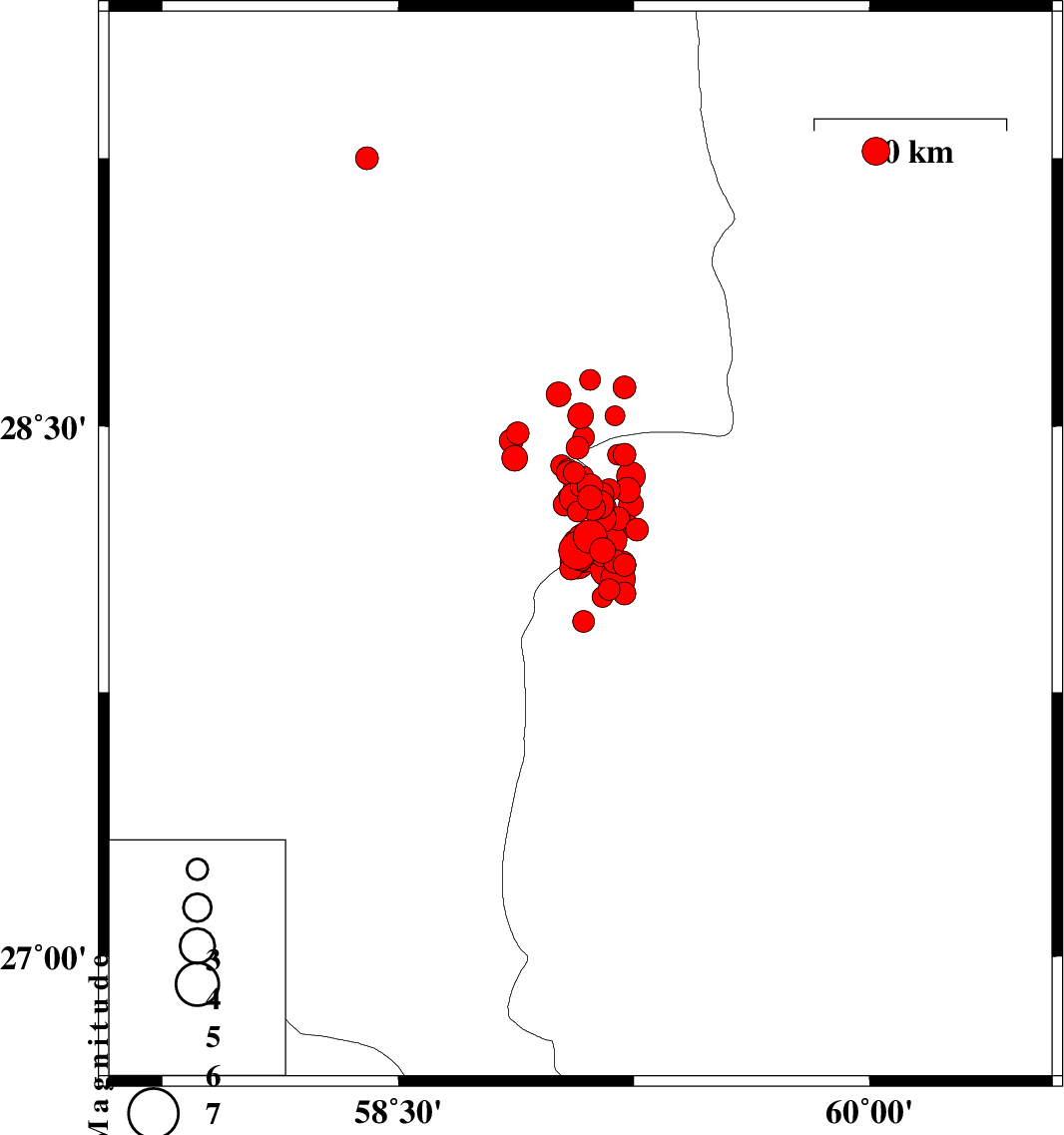 2011/01/28 01:31:43.5 05:01:43.5 28.1559.1114 ML:2.7 Kerman Province, 140 km North-East of Kahnuj