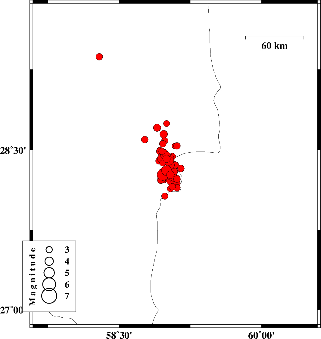 2011/01/28 01:31:43.5 05:01:43.5 28.1559.1114 ML:2.7 Kerman Province, 140 km North-East of Kahnuj