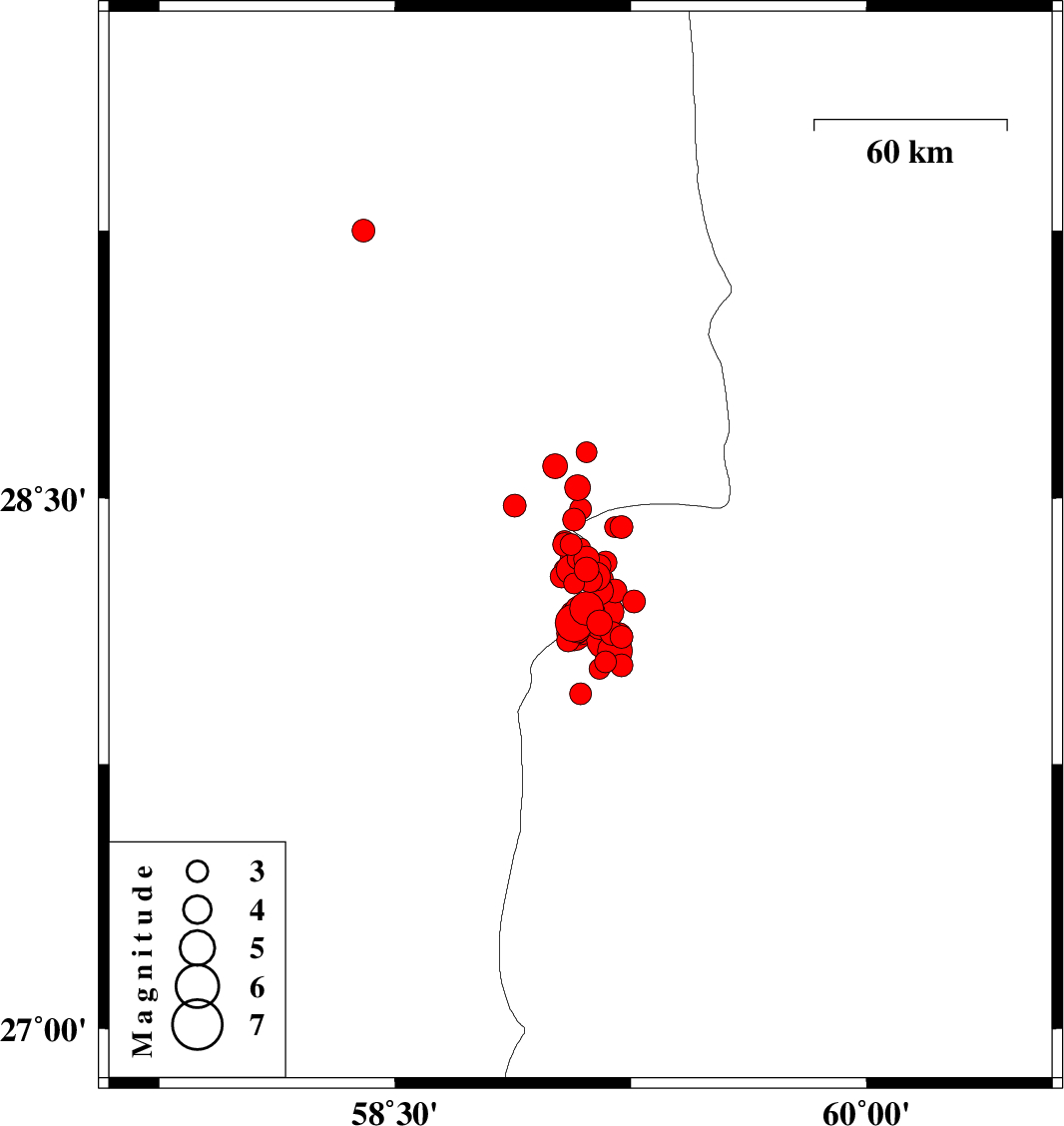 2011/01/28 06:34:00.8 10:04:00.8 28.359.0618 ML:4.2 Kerman Province, 113 km South-East of Bam
