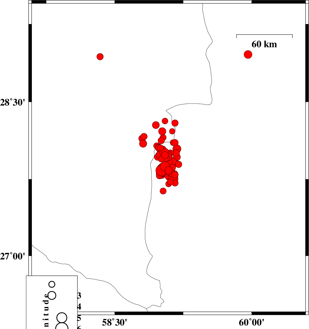 2011/01/28 01:31:43.5 05:01:43.5 28.1559.1114 ML:2.7 Kerman Province, 140 km North-East of Kahnuj