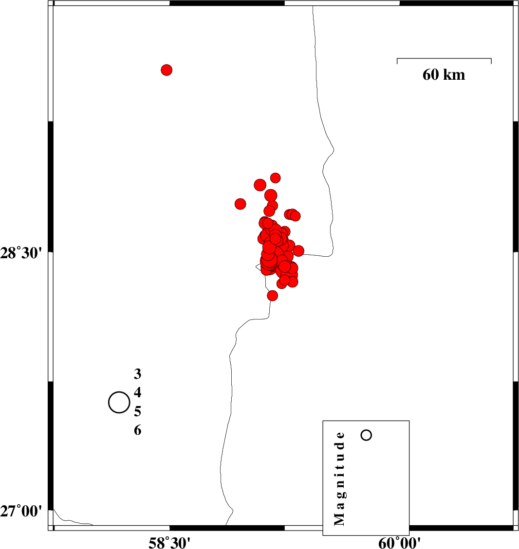 2011/01/28 01:31:43.5 05:01:43.5 28.1559.1114 ML:2.7 Kerman Province, 140 km North-East of Kahnuj
