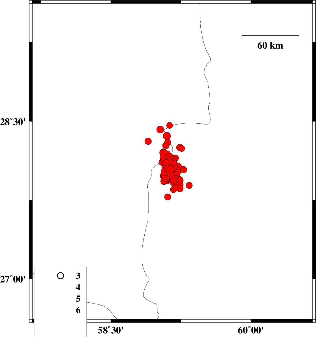 2011/01/28 08:37:25.5 12:07:25.5 28.3359.0814 ML:3 Kerman Province, 112 km South-East of Bam