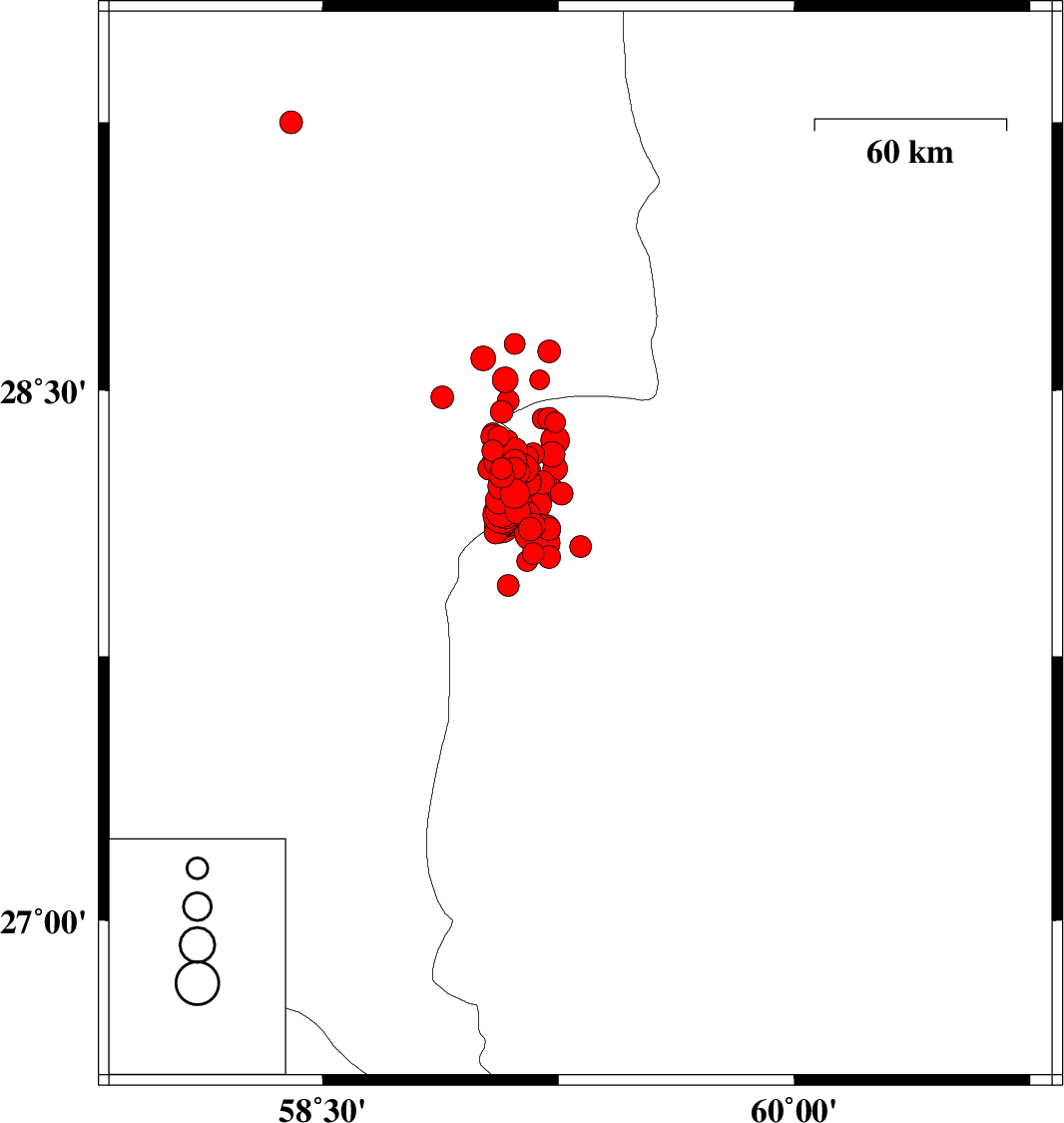 2011/01/28 08:37:25.5 12:07:25.5 28.3359.0814 ML:3 Kerman Province, 112 km South-East of Bam