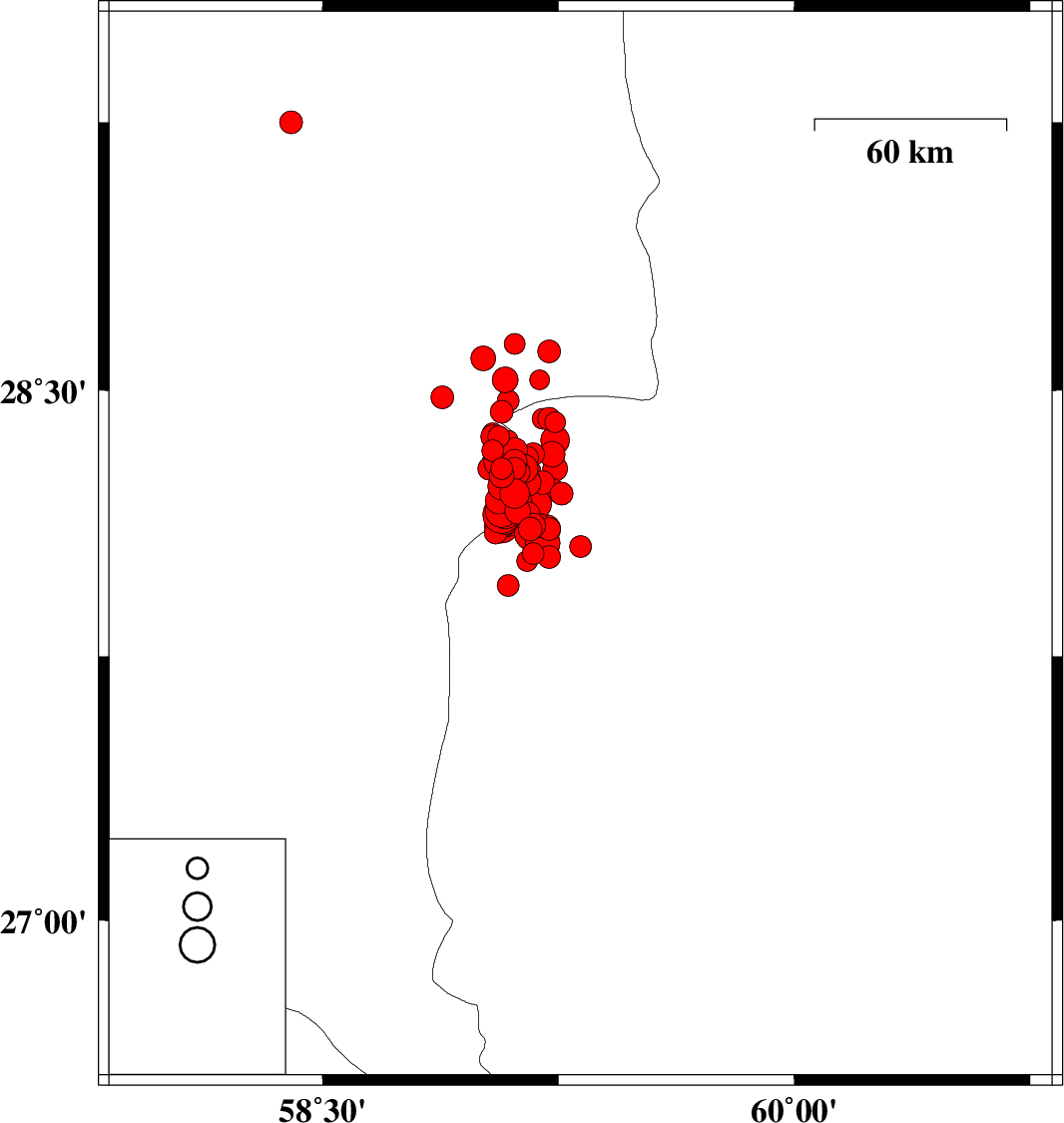 2011/01/28 01:31:43.5 05:01:43.5 28.1559.1114 ML:2.7 Kerman Province, 140 km North-East of Kahnuj